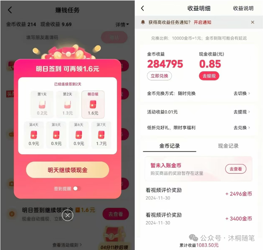 • 省心之处:每天0点金币会自动换成钱,不用你操心。坚持下来,一个月的奶茶钱还是很稳的。
