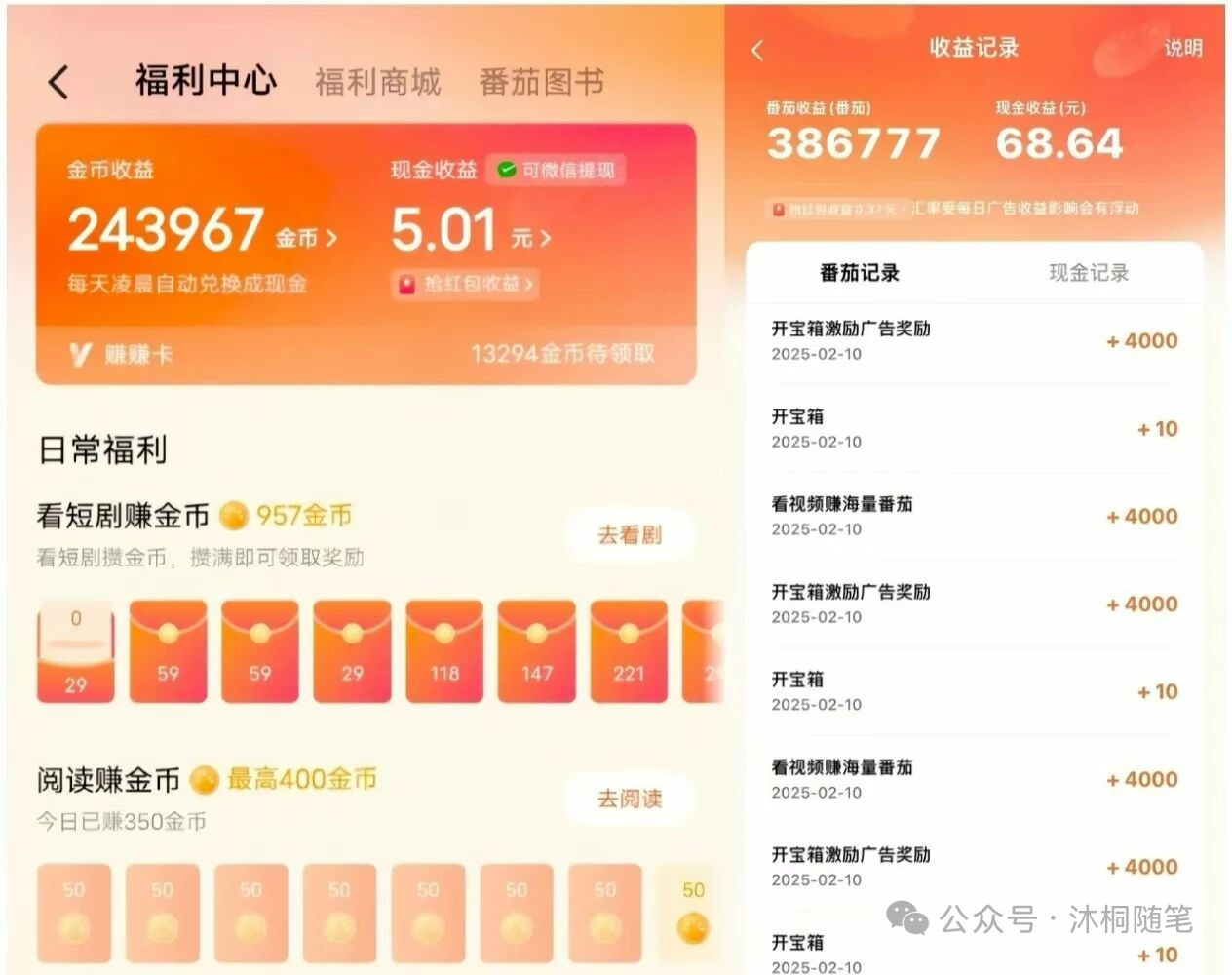 • 特点:广告时长不一,给的收益也不同。多逛逛,说不定就能遇到给得多的。